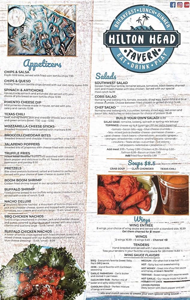 The menu at Hilton Head Tavern features classic American fare with a twist. From burgers to seafood, it offers something for everyone. Enjoy hearty dishes like the Tavern Slow Cooked Salmon or Fish N Chips. Appetizers also shine with options like Fried Pickles and Fried Shrimp.